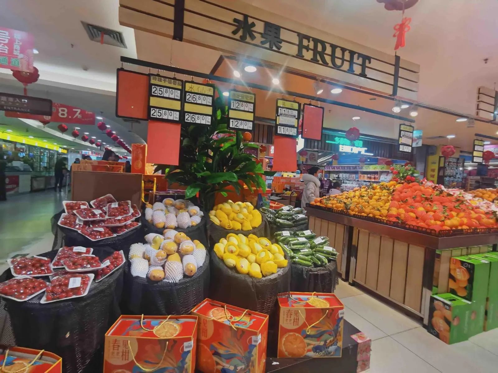 走進市內各大超市,喜氣洋洋的龍年海報裝飾了整個賣場,龍年裝飾品、吉祥物琳瑯滿目,水果、蔬菜、副食、凍品各品類齊全,前來采購的市民絡繹不絕。