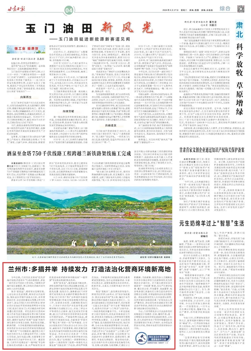 今年以來(lái),蘭州市認(rèn)真落實(shí)“優(yōu)化營(yíng)商環(huán)境提質(zhì)增效年”行動(dòng)部署要求,采取一系列務(wù)實(shí)管用的工作舉措,不斷強(qiáng)化營(yíng)商環(huán)境法治保障,努力將優(yōu)化營(yíng)商環(huán)境全面納入法治化軌道。